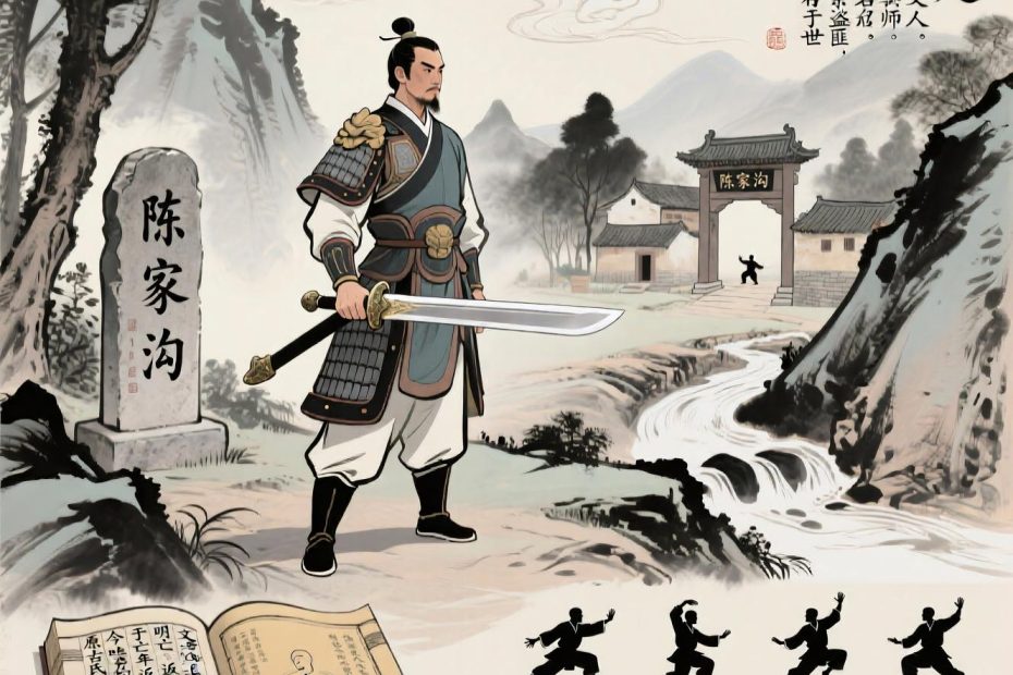 Chen Wan Ting 陈王廷 was the chief of civil troops defending Wen county (Wenxian). After the downfall of the Ming Dynasty, he retired and returned to his village, Chenjiagou to develop his martial skills. In 1644, Chen Wang Ting returned to the Chen village and created his forms of boxing. Originally containing up to seven sets, only two sets of Chen Style Tai Chi Quan have survived to the present. Main Text: Twenty-nine movements from the thirty-two movements of Qi Jiguang and the Daoyin and Tu Na deep breathing methods from the Taoist breathing Scripture “黄庭经Huang Ting Jing” were used. With these he created the original Taijiquan. Thus, Taijiquan was first created in the 17th century. This form of martial was kept secret, for the most part, within the Chen family in Chenjiagou (Chen Village) until the 1900’s. “WanTing alias Zhouting 字奏庭 was a knight at the end of the Ming Dynasty and a scholar in the early years of the Qing Dynasty. Known in Shandong province as a master of the martial arts defeating more than 1,000 bandits, was originator of the bare-handed and armed combat boxing of the Chen school. Was born a warrior as can be proved by the sword he used in Combat.” (The Genealogy of the Chen Families, page 12)